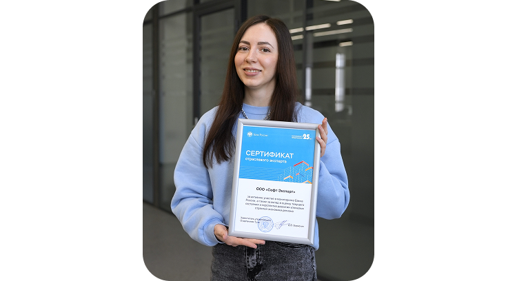 Банк России вручил нашей компании Сертификат отраслевого эксперта. Награда получена за активное участие в мониторинге предприятий — опросе, который помогает центробанку оценить состояние и перспективы экономики.