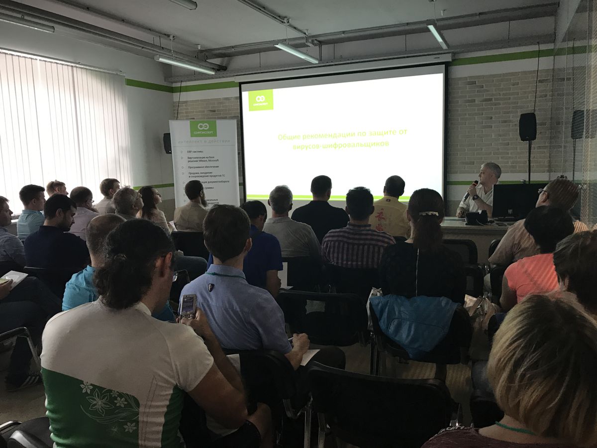 12 июля «СофтЭксперт» провёл экстренный семинар «Новые вирусы-шифровальщики 2017: WannaCry, Petya, Mischa. Что делать?». Несмотря на то что мероприятие проходило без спикеров из именитых компаний-вендоров, без розыгрыша ценных призов и без длительного сбора гостей, явка на него оказалась рекордно высокой. Актуальная тема привлекла в конференц-зал «СофтЭксперт» IT-директоров и специалистов крупнейших промышленных предприятий, бюджетных учреждений и коммерческих организаций региона. В числе гостей были представители ПАО НПО «Стрела», ОАО «КБП», АО «Полема», Алексинского опытного механического завода, филиала «Газэнергосервис – завод РТО», КомСтройПроекта, АО «ТулаТИСИЗ», АО «Тульское НИГП», «Новой земельной компании», «ФМ-Медиа», администрации Киреевского района, Алексинской районной больницы №1, музея-усадьбы Л. Н. Толстого «Ясная Поляна», Тульской областной филармонии, «Тулаавтодора», Фонда капитального ремонта Тульской области, Лицея искусств, Протановской школы Дубенского района и др.
