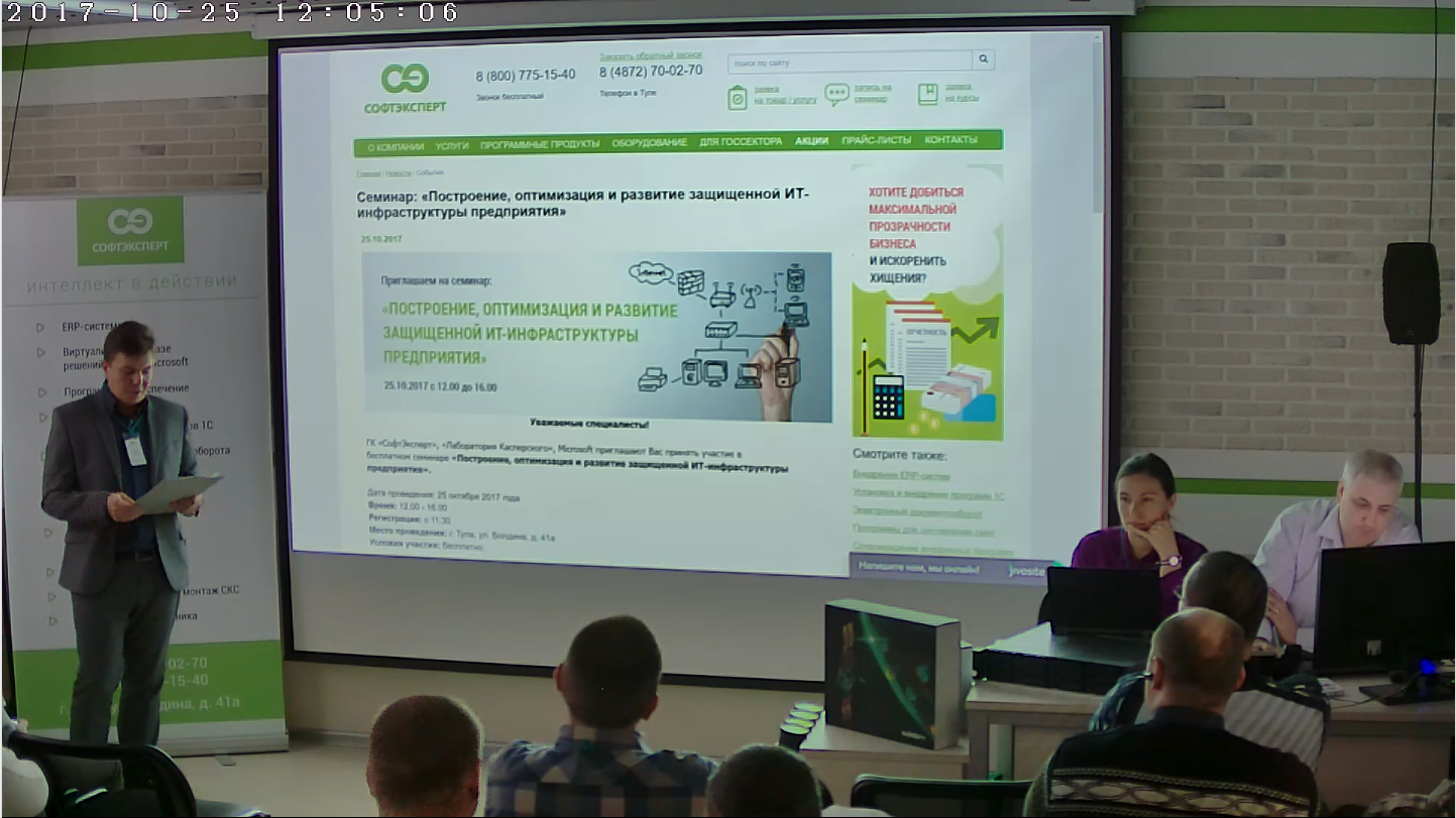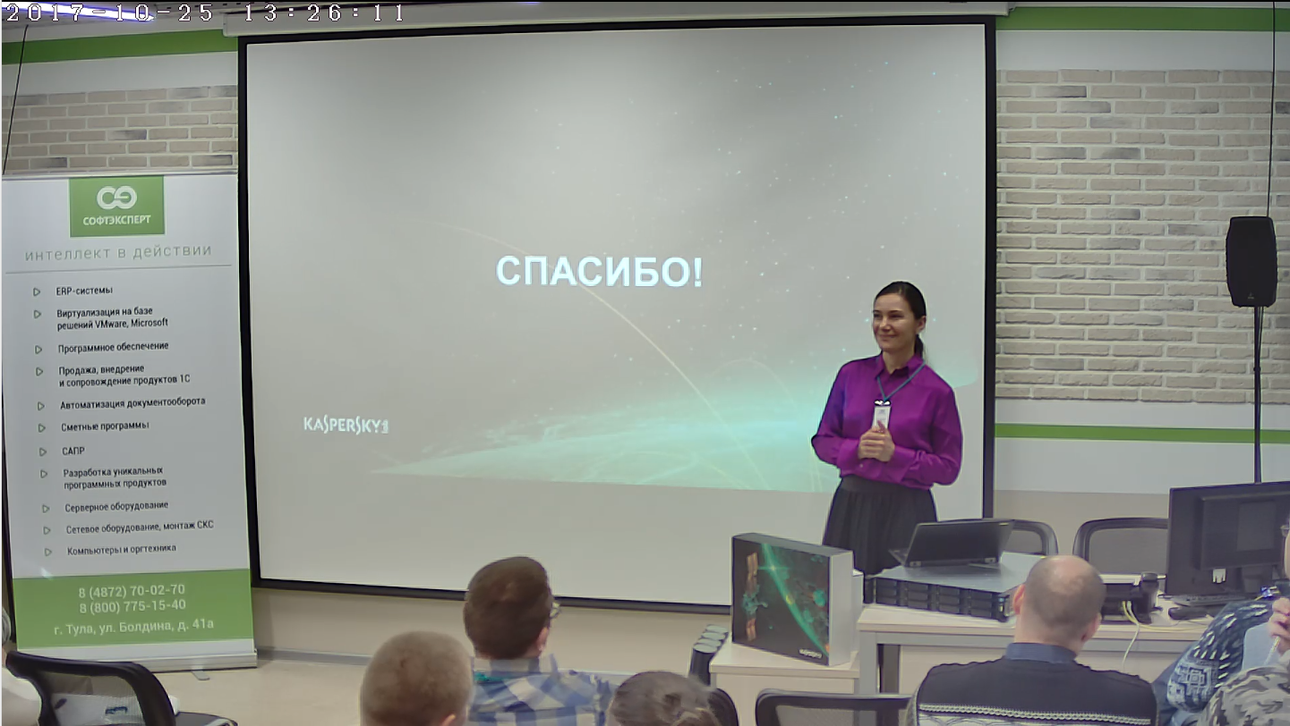 25 октября 2017 года «СофтЭксперт», «Лаборатория Касперского» и Microsoft провели семинар «Построение, оптимизация и развитие защищенной ИТ-инфраструктуры предприятия». Гостями мероприятия стали ведущие IT-специалисты из 30 коммерческих компаний и бюджетных учреждений Тулы и области.