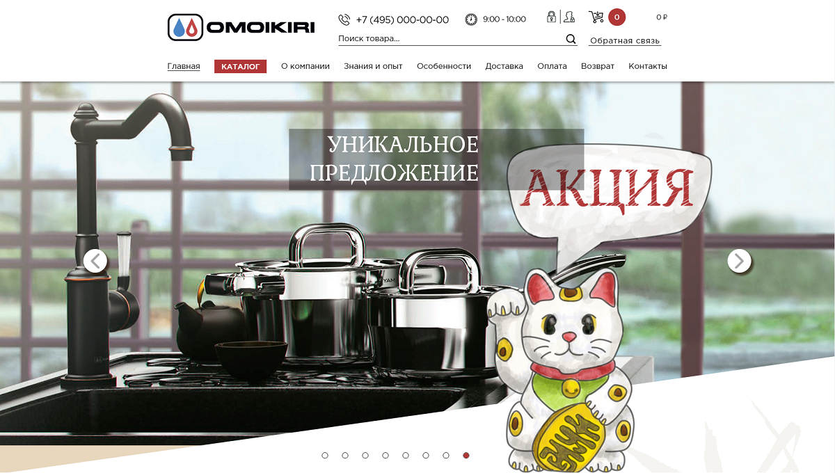 Для увеличения продаж товаров для обустройства кухни (моек, смесителей, аксессуаров, посуды и ножей марок «OMOIKIRI», «YAMATERU» и «MIKADZO») заказчику необходим был полнофункциональный интернет-магазин. Помимо онлайн-продаж, сайт должен был решать задачу популяризации продукции представленных японских брендов на российском рынке. Достичь этого планировалось посредством размещения максимально подробной и полезной информации о каждом наименовании продукции, включая видеопрезентации, пресс-релизы, каталоги для скачивания, новости и прочие материалы.