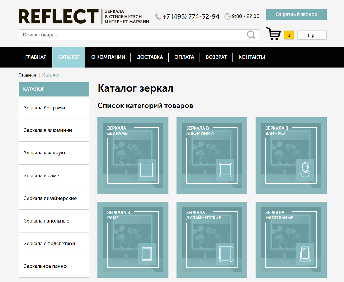 Веб-студией «СофтЭксперт» создан адаптивный сайт интернет-магазина зеркал . Ресурс развёрнут на CMS «1С-Битрикс»: