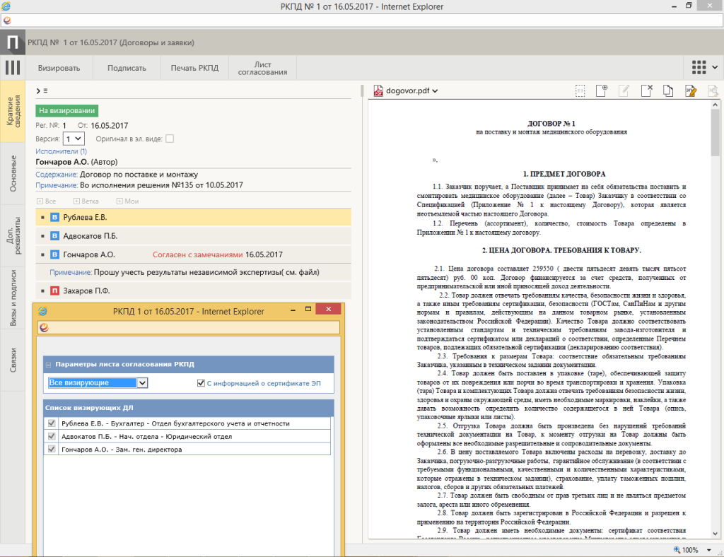 Упростилась и работа с печатными формами. Лист согласования проекта документа теперь можно распечатывать прямо из регистрационной карточки (РК) документа, сформированного на базе утверждённого проекта. Возвращаться к регистрационной карточке проекта документа (РКПД) нет необходимости.