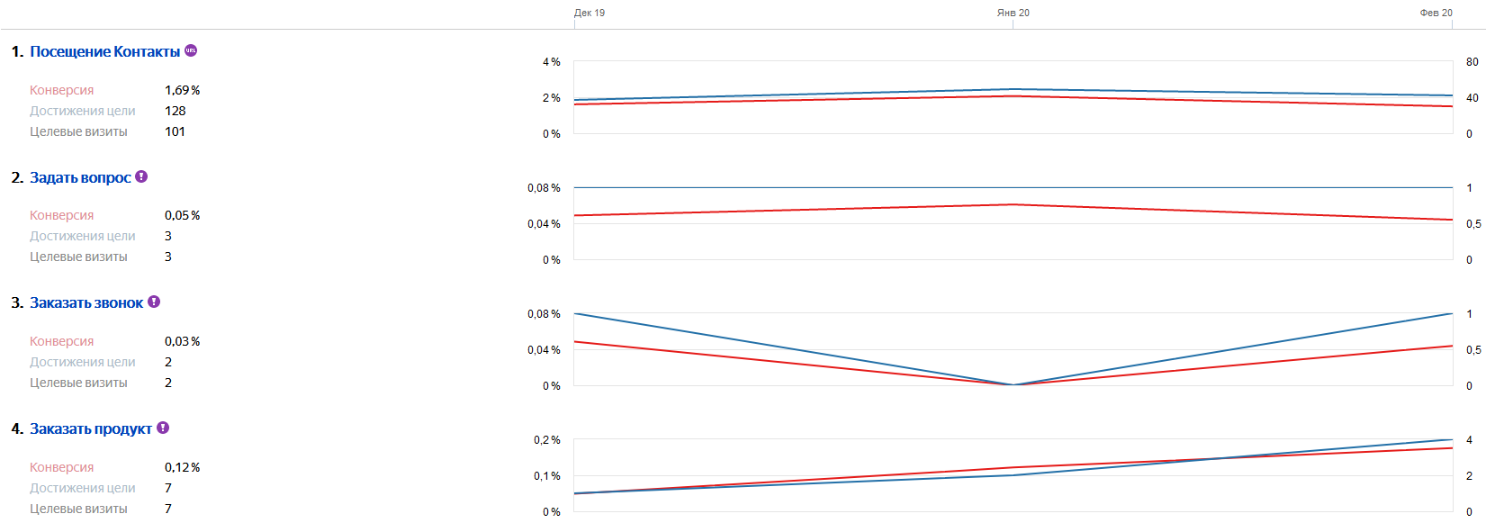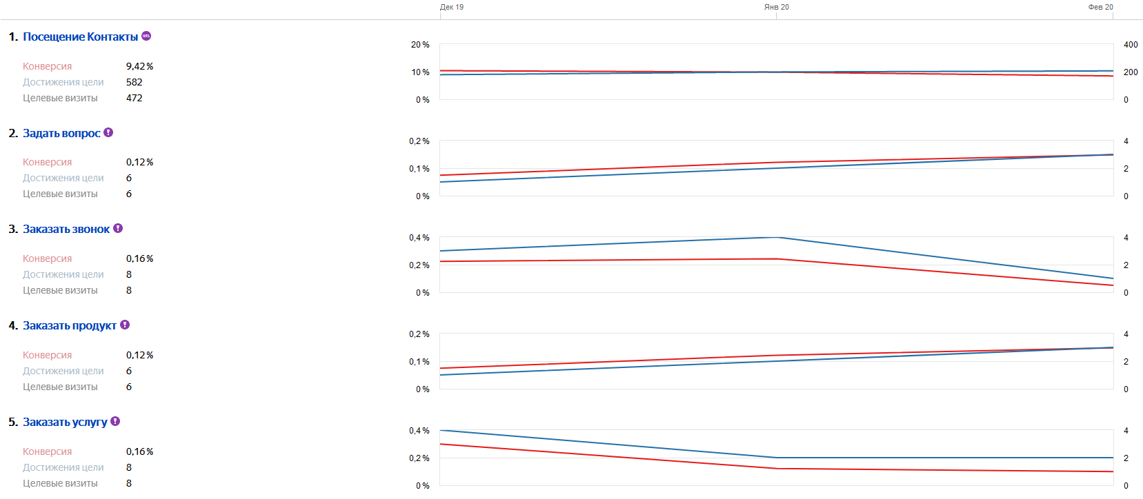 Активная работа по проекту началась в марте 2019 года. Для отслеживания конверсий в счетчиках Яндекс.Метрика и Google Analytics было настроено отслеживание достижений целей. Для улучшения качества аналитики был подключен сервис коллтрекинга Comagic.