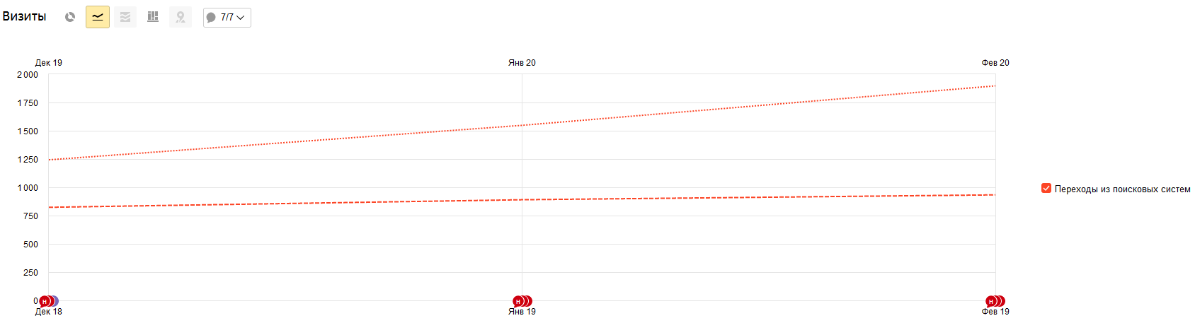 Динамика поискового трафика за последний квартал (01.12.19-29.02.20) в сравнении с аналогичным периодом прошлого года (01.12.18-28.02.19):
