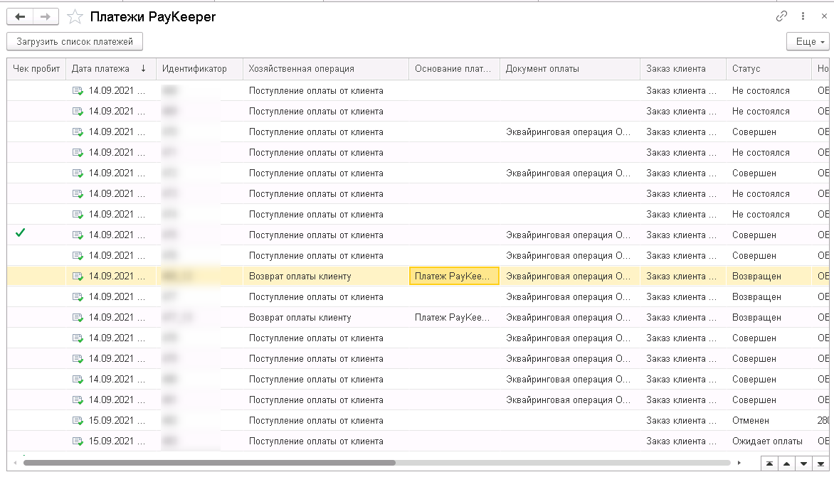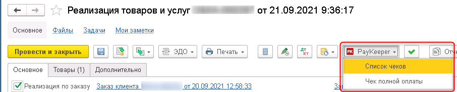 - автоматическое создание в 1С документов оплаты;