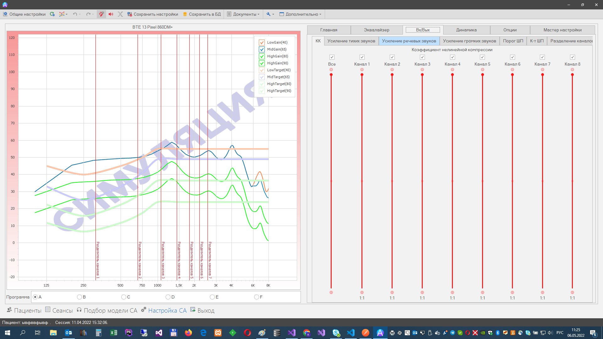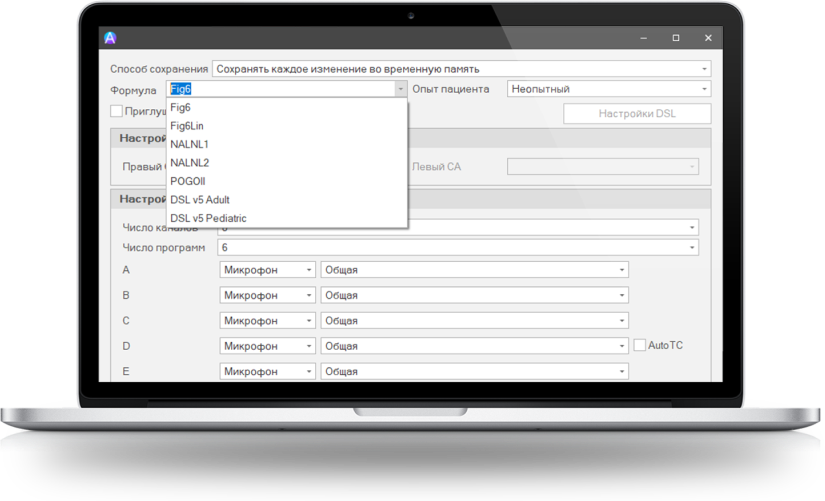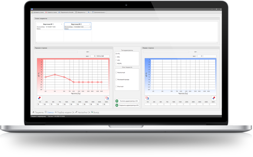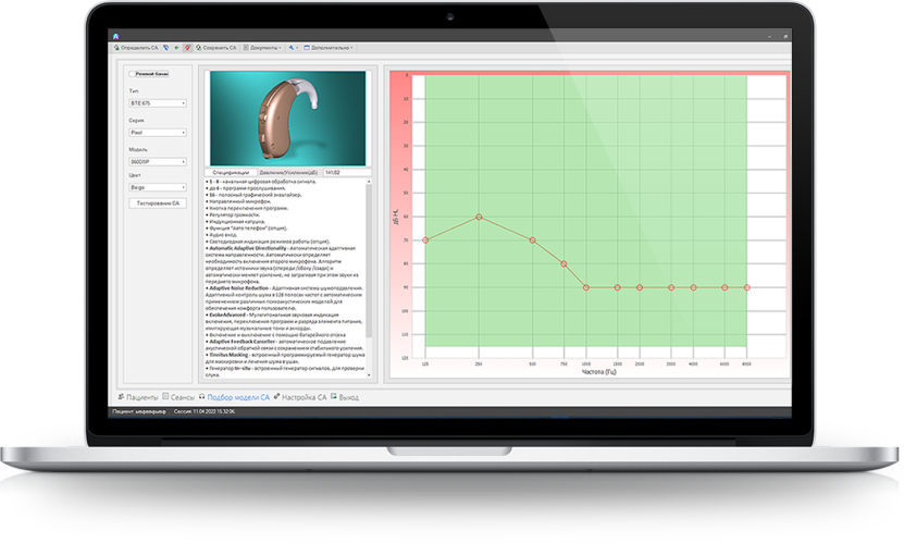 Все параметры слухового аппарата сохраняются в базе данных и привязываются к карточке пациента. Это позволяет легко менять настройки от сеанса к сеансу.