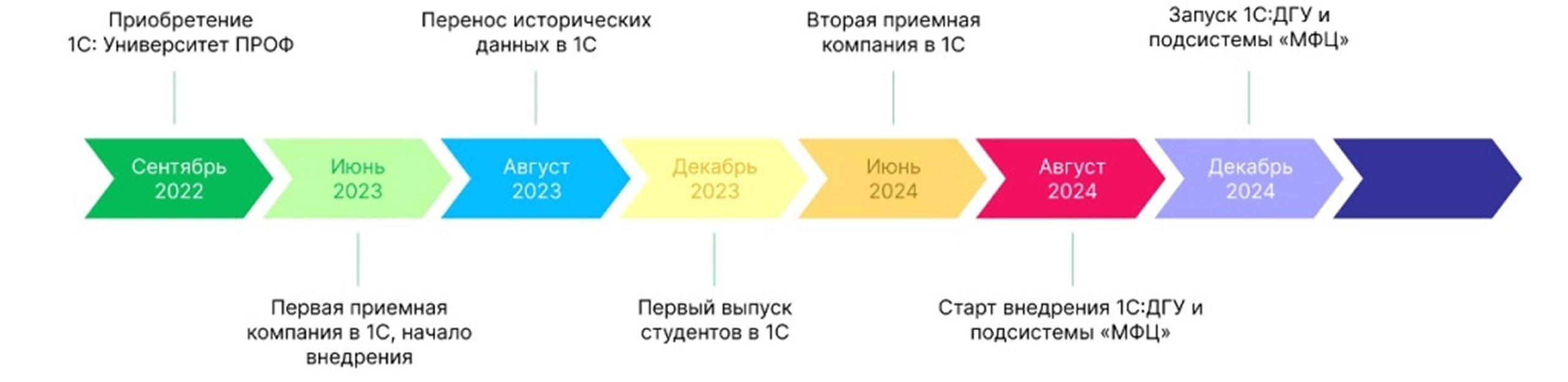 С 2022 года в университете началась реализация проекта по созданию единого информационного контура на базе решений «1С». Стимулом к началу стал общий процесс информатизации образования в стране, а также новые стандарты и требования законодательства к ПО в образовательных учреждениях.
