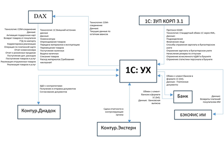 Так как компания заказчика является частью международной группы, в ее ИТ-инфраструктуре для автоматизации процессов оперативного и регламентированного учета использовались зарубежные программы. В частности, системы ERP-класса SAP и Microsoft Dynamics AX (Axapta).