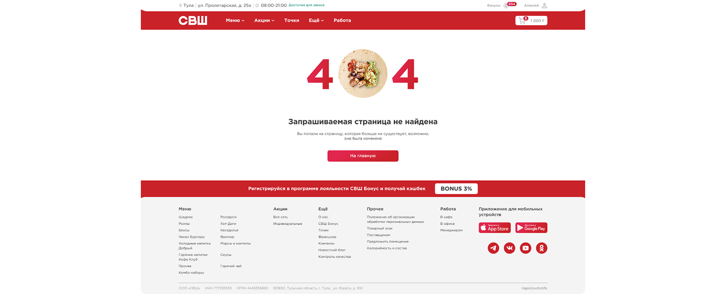 Прекрасным дополнением к обновленному дизайну стала новая страница 404, которую дизайнер оформила в виде еще не свернутой шаурмы: в меру строгая и в меру ироничная.
