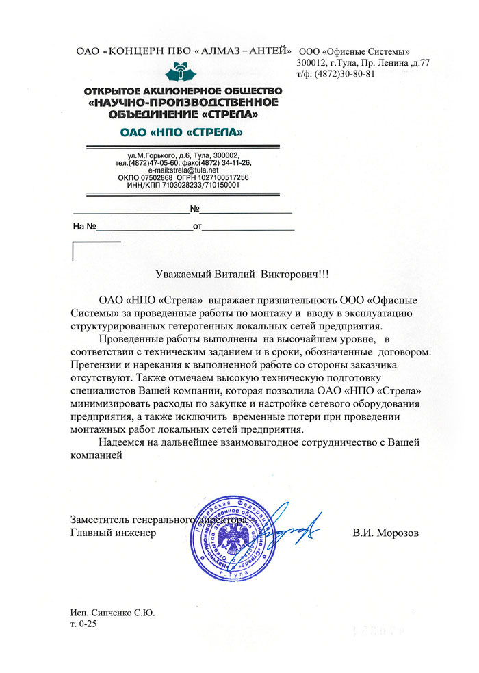 Компания "СофтЭксперт" осуществила монтаж и ввод в эксплуатацию гетерогенных локальных сетей на территории ОАО "НПО "Стрела".