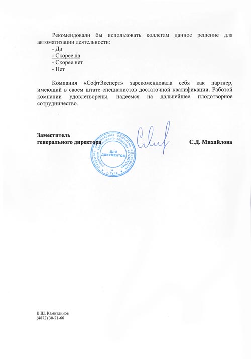 В результате руководством предприятия было принято решение о модернизации системы автоматизации холдинга и внедрении конфигурации «1С:Управление производственным предприятием 8.2» в четырех основных организациях. При выборе программного продукта мы оценивали его функциональную наполненность, стоимость приобретения, внедрения и владения, наличие на рынке достаточного объема услуг по его поддержке. В качестве партнеров на внедрение была выбрана группа компаний «СофтЭксперт», так как она обладает необходимым опытом внедрения систем такого уровня на промышленных предприятиях.