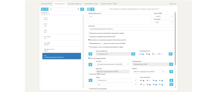 Опция для технологов системы, позволяющая настраивать параметры процессов взаимодействия по СМЭВ в ходе оказания государственных и муниципальных услуг.
