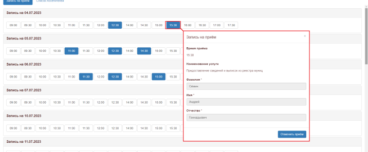 Готовая к установке система предварительной онлайн-записи граждан на прием в ведомства на точную дату и время, которая интегрирована с порталом госуслуг и локальной СЭД «ДЕЛО».
