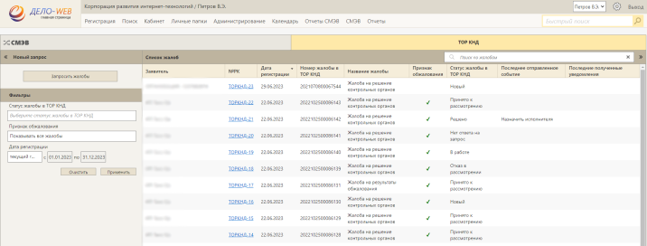 Опция взаимодействия по каналам СМЭВ для ведомств, участвующих в процессах рассмотрения жалоб на юридически значимые решения контрольных органов в части их досудебного обжалования.