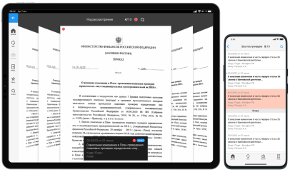 Push-уведомления о поступлении новых документов и умные подсказки.