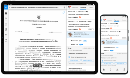 Доступ к задачам и электронным документам в удобное время и без привязки к рабочему месту.