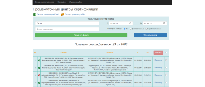 Централизованный контроль и мониторинг сертификатов пользователей, систем, сайтов, а также хранение, учет, статистика, оповещение о завершении срока действия.