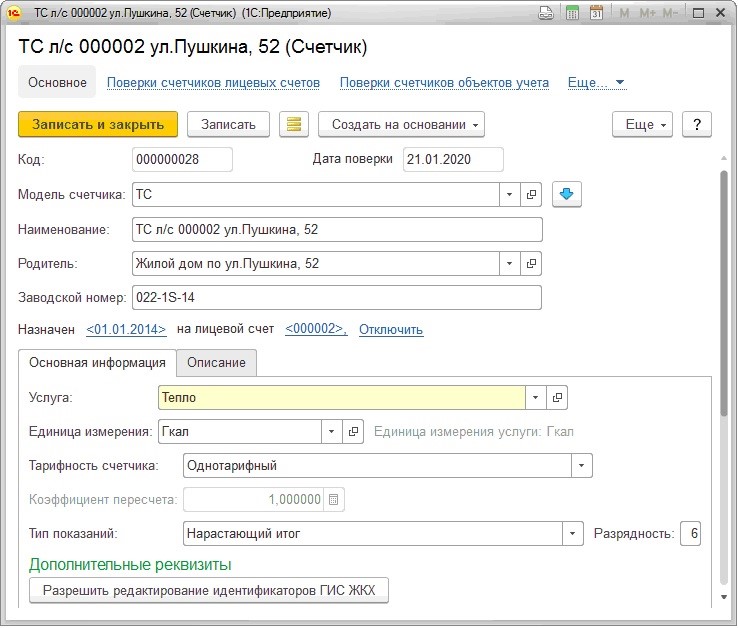 Открытие нескольких лицевых счетов на один адрес, с возможностью их раздельного учета;