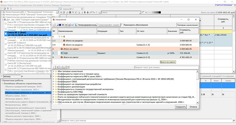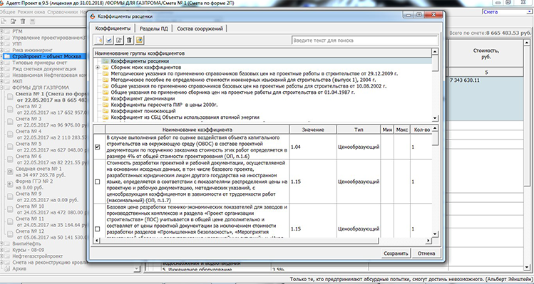 Возможность начислять коэффициенты на смету, расценку, раздел, подраздел.