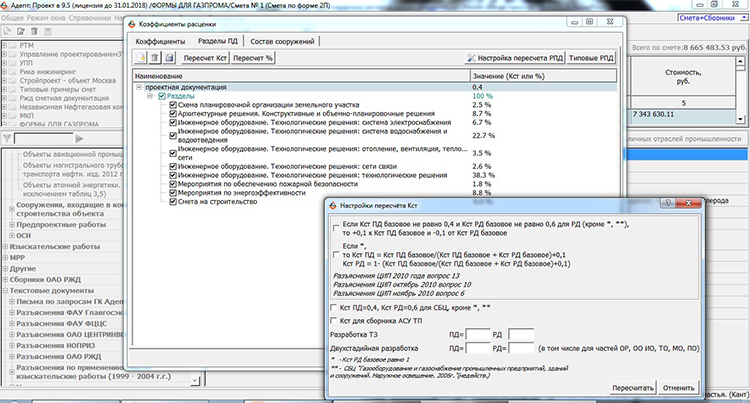 Автоматический пересчет стадийности ПД и РД.