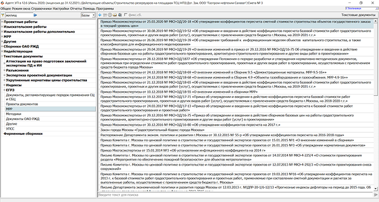 Уникальной особенностью программы является огромная база справочной информации с функцией быстрого поиска. Это позволяет моментально быстро найти нужный справочник, расценку или ответ на вопрос из 300 действующих СБЦ, МРР, иных нормативных документов, а также из более 2000 разъяснений «ЦЕНТРИНВЕСТпроекта».